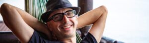 con barba larga y camisa a cuadros.